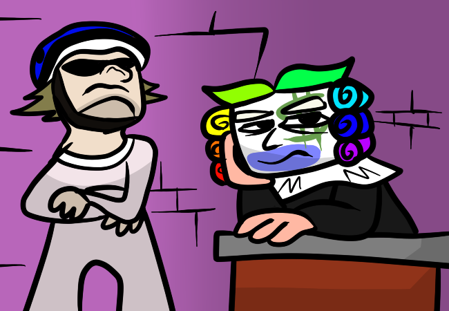 A fever dream of a story driven by surreal humor, but has a surprising amount of coherence for what it is. One of my largest comics to date, borrowing Sweet Bro and Hella Jeff as they get wrapped up in various absurd antics, including a lawsuit from an all-powerful judge, a scuffle with territorial skater bros, and doing odd jobs for reality-warping clowns.
