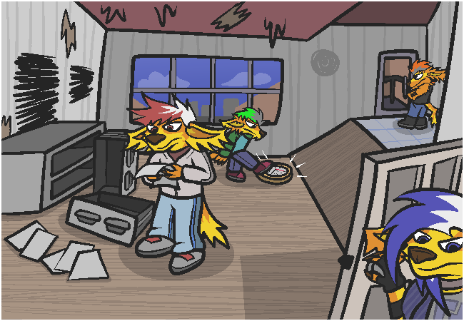 You all made your way up to the room he was supposedly staying in at some point, just to find a whole lot of nothing. No important documents left lying around, all the papers scattered about were totally empty... you couldn't even find any valuables to pawn off. Total waste of time, you were thinking.