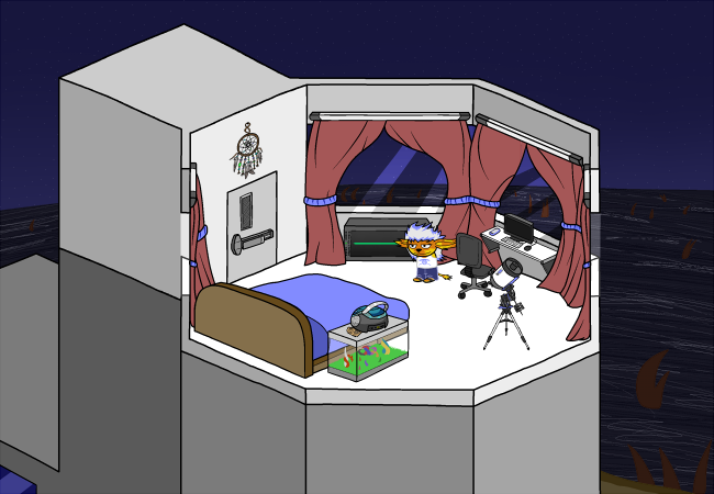 Tonight you have stayed up a bit later than you wanted to so you can give your friend Kristan some very important advice regarding the previously mentioned machines, and now that that's been done, you can get some probably-important rest. Buuuut maybe you'll poke around and do some other things first, just for the hell of it.